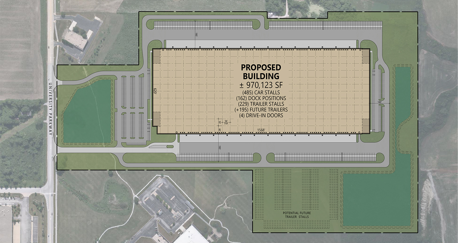 - 620′ x 1,568′ – Cross-dock Configuration